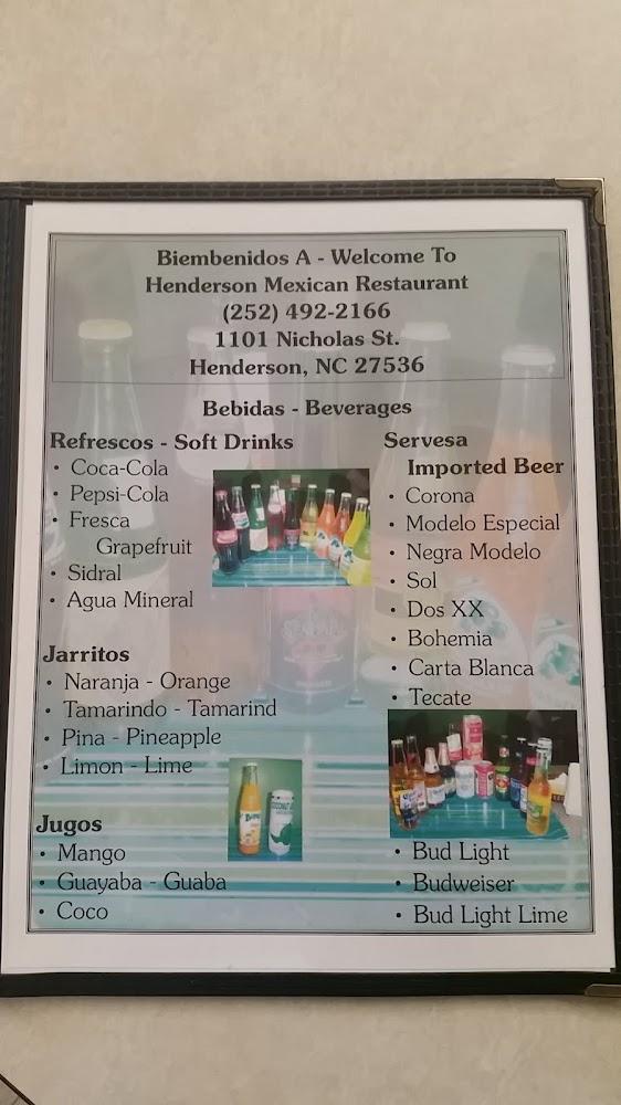 Welcome to Henderson Mexican Restaurant, your go-to destination for authentic Mexican cuisine in Henderson, NC. Located at 1101 Nicholas St, we offer a vibrant and relaxed atmosphere perfect for lunch, dinner, or a solo bite. Our menu features traditional dishes, quick bites, and local specialties, complemented by an extensive selection of beers and cocktails. Enjoy convenient services like takeout, delivery, and dine-in options, all in an accessible setting. Whether you're with friends or family, we cater to everyone, including kids with our special menu. Experience the rich flavors of Mexico right here in Henderson!